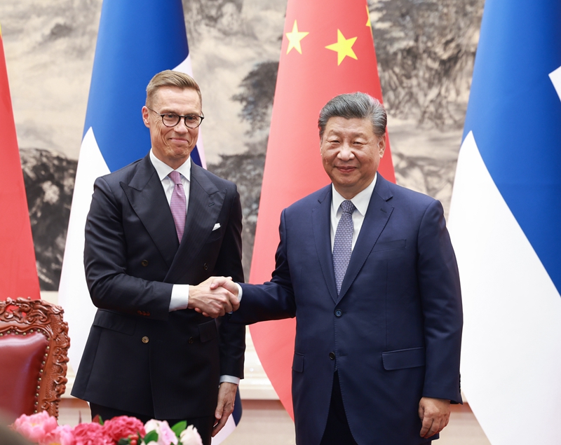 习近平指出,中芬两国都爱好和平,都倡导多边主义和自由贸易。中方愿同芬方加强应对气候变化、生物多样性保护、全球可持续发展、人工智能治理等问题的沟通和合作,携手维护世界和平稳定,推动构建平等有序的世界多极化、普惠包容的经济全球化。明年是中国同欧盟建交50周年,希望芬方继续为推动中欧关系健康稳定发展发挥积极作用,实现中芬关系、中欧关系相互促进、共同发展。